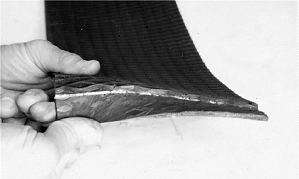 Do not leave more than 0.5 mm (0.020 in.) of pattern on belt in area to be laced. If too much material is left on belt, hooks will not fasten properly to belt.
