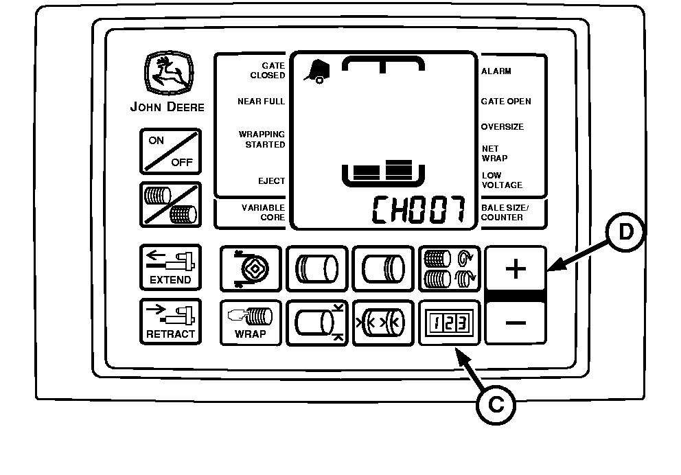 Continue to hold COUNTER key (C) and press PLUS key (D) until: