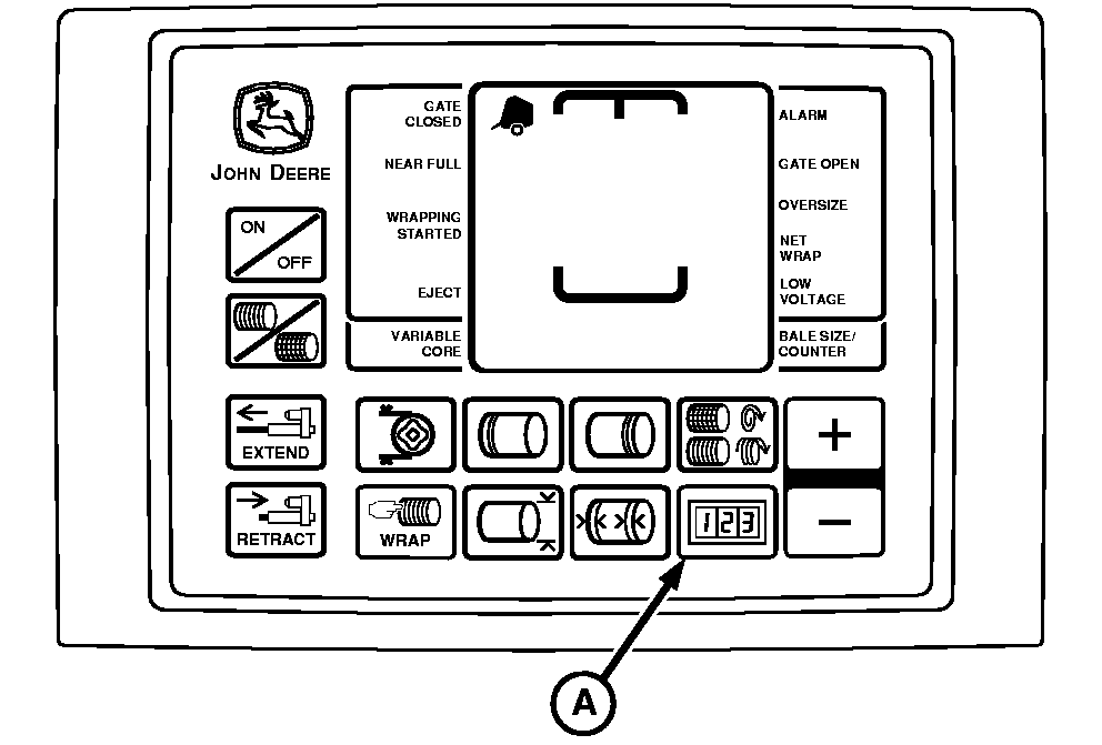 Turn monitor-controller ON. Baler model will appear for approximately 2 seconds. Verify model is correct.