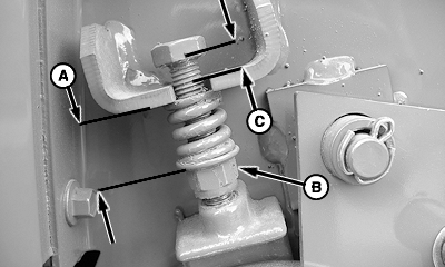 Adjust spring length by loosening or tightening spring adjusting nut (B) until dimensions (A) and (C) are within specifications.