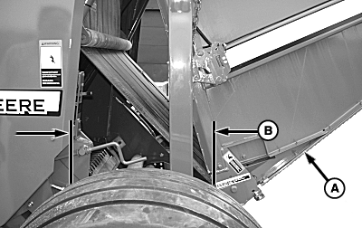 Park baler on a level surface. With baler empty and gate closed, engage PTO and run at slow speed. Be sure gate is fully closed, and pressure gauge is reading 10:00 or higher. Check the tracking of the belts by observing belt positions relative to belt guides.