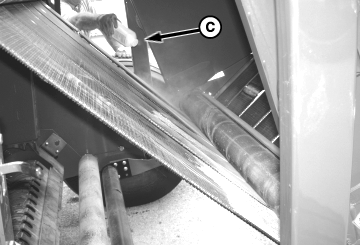 If belts are new and have not been used, add baby powder to simulate crop dust or the belts may not track properly on the rolls.