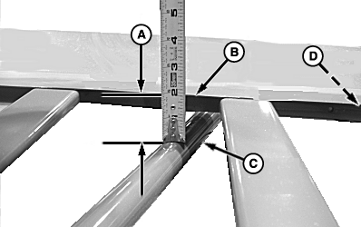 3. Measure distance (A) between top of net pan angle (B) and top of both support tubes (C) and (D). Distance (A) should be 52 ± 5 mm (2.0 ± 0.2 in.).