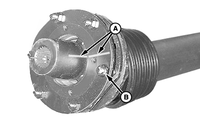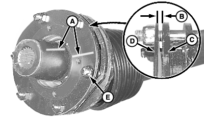 Loosen six lock nuts (B) progressively leaving some tension on belleville spring.