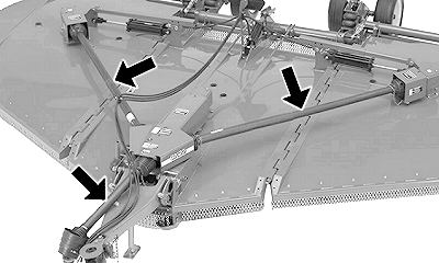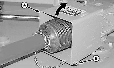 Disengage PTO, shut off tractor engine, remove key and allow components to stop rotating.
