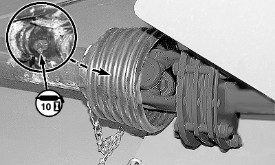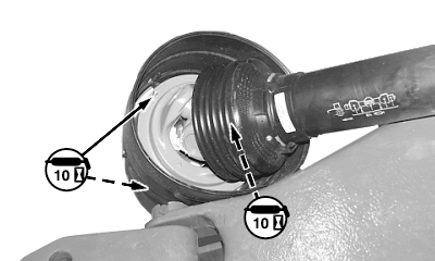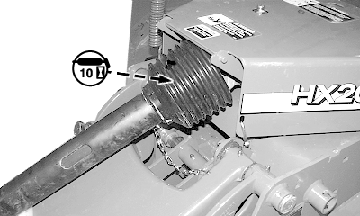 Perform the following procedure on all gear cases with rotary cutter on level ground. Left-hand side shown.
