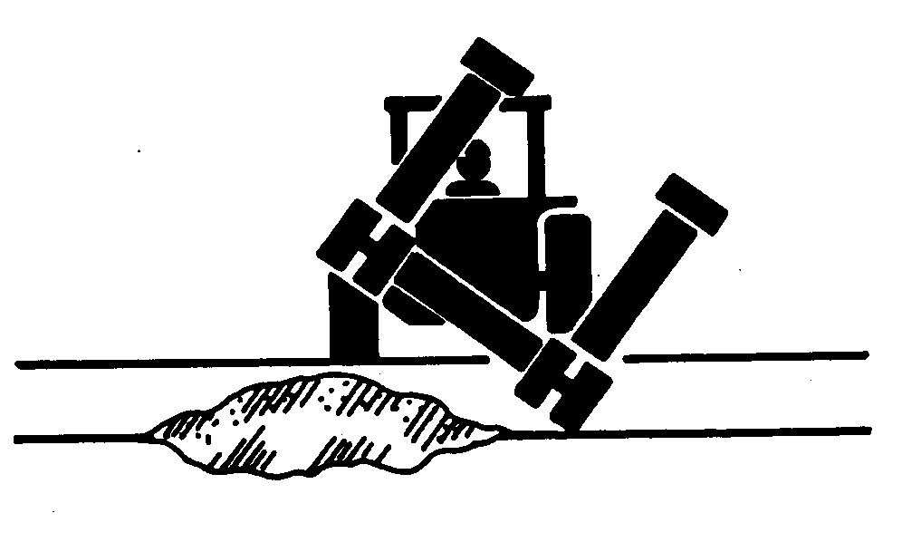 Travel slowly over rough terrain to help prevent machine roll-over.