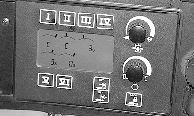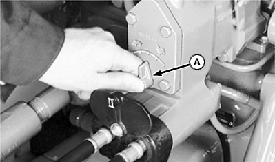 Set hydraulic flow control/indicator (A) to fully raise or lower machine in 2 seconds.