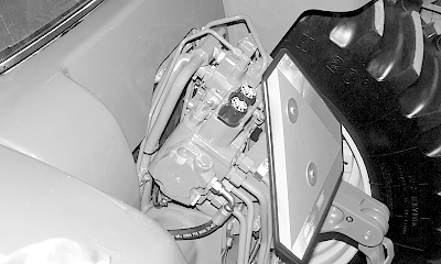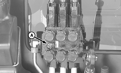 Set hydraulic flow control/indicator (A) to the slowest possible speed.