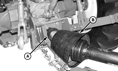 Pull back on shield (B) to make sure driveline is locked. Do not pull collar, this will release latch.
