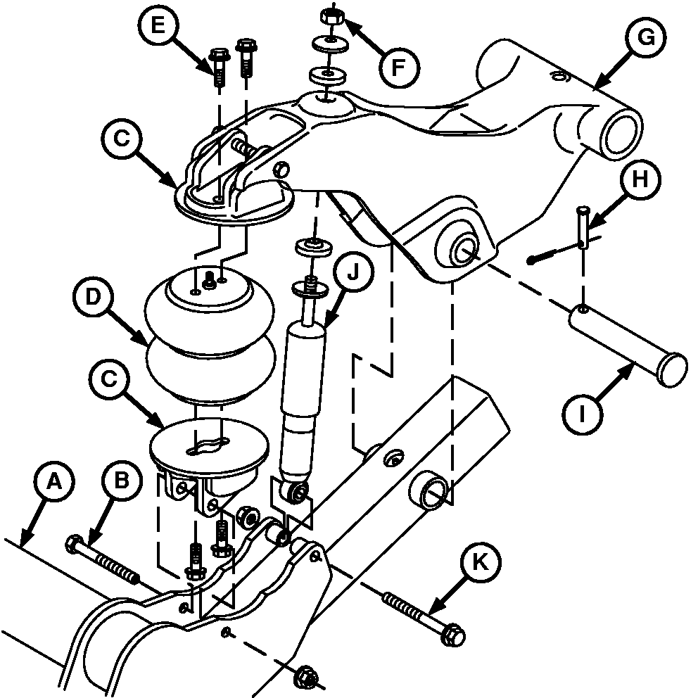 Remove flange head cap screws (E), retainers (C) and air spring (D).