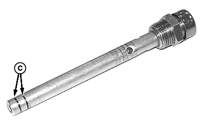 Install dipstick/vent (B) and screw in fully, then remove. Oil level should be between lines (C). Add oil, as necessary.